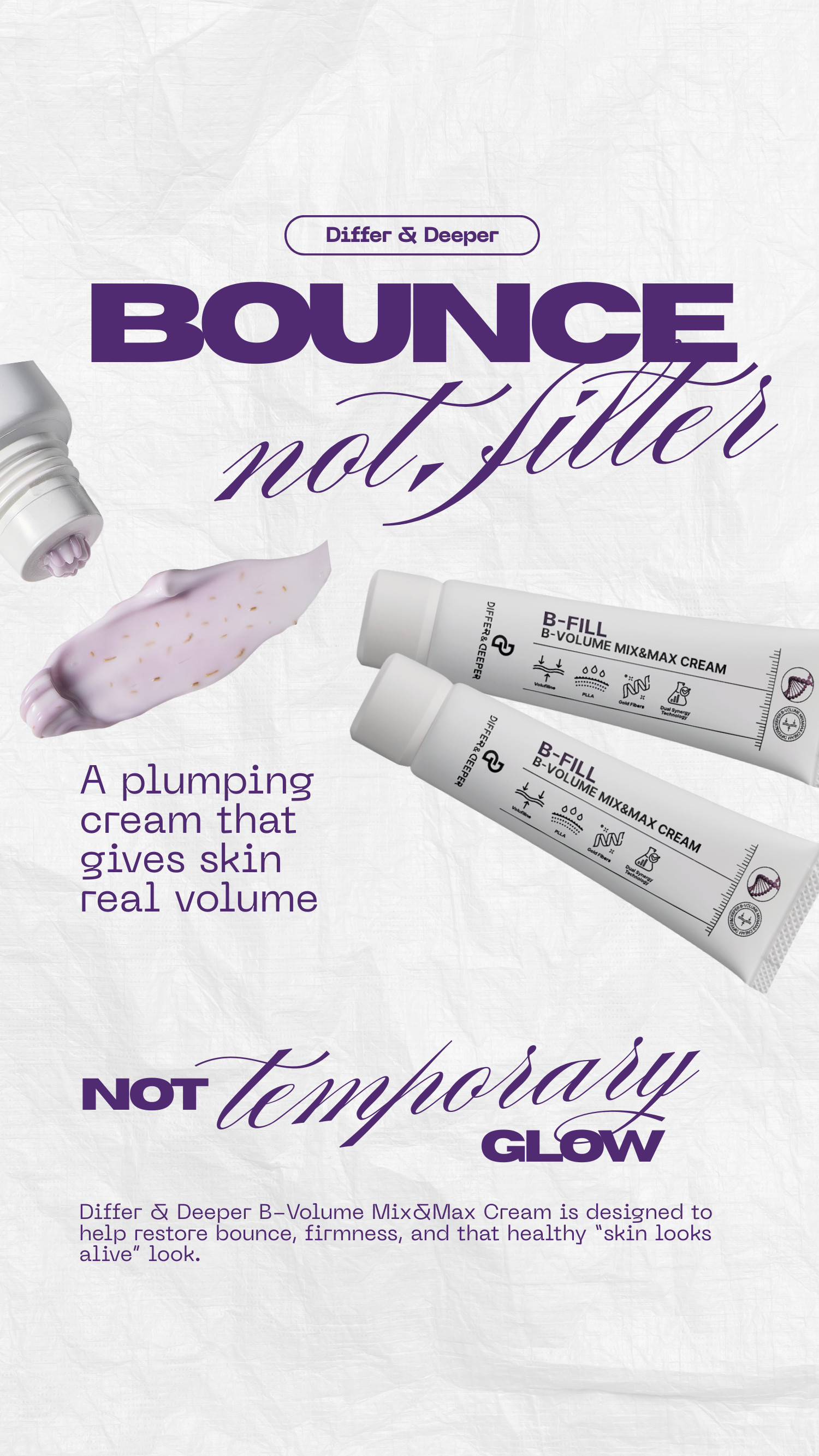 Plump skin isn’t about trends or quick fixes—it’s about maintaining balance, strength, and elasticity. With Differ & Deeper B-Volume Mix&Max Cream, volume feels intentional and skin looks comfortably full, not overdone. When your skin feels supported, it shows.