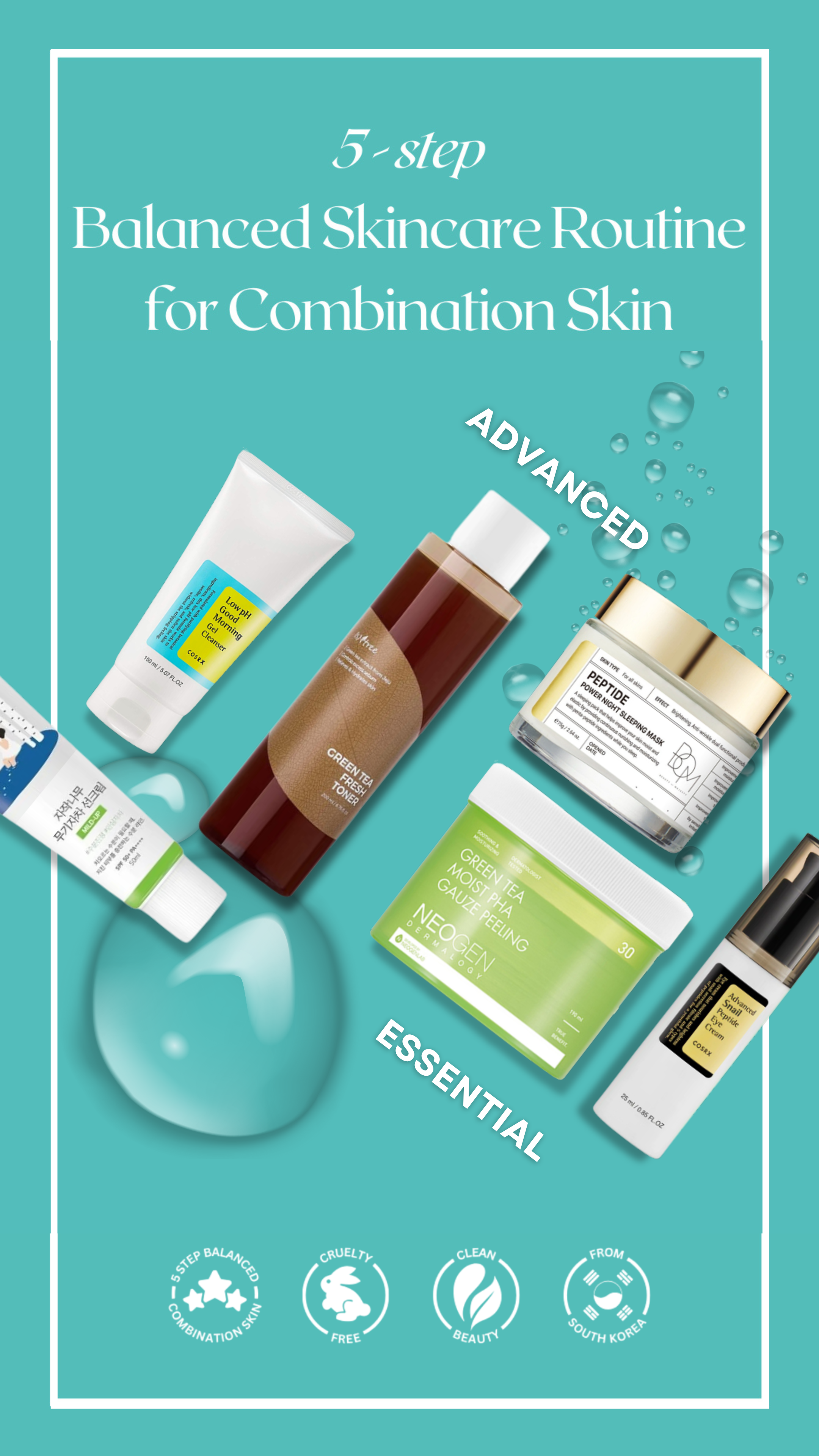 Essential + Advanced Set: Combines the essential and advanced sets for a complete day and night routine, plus a free gift for added value.